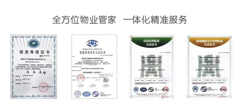 安平物業成立于2004年,是國家二級物業管理企業,AAA級信用企業,為政府機關,公檢法,街道,社區,大中院校,醫院,商場,金融,保險,大中型企業,車站,旅游景區提供保潔,綠化,食堂管理,消防監控,強弱電,中央空調、電梯、高壓配電、上下水的運行與維護服務。擁有物業管理師、強弱電技術人員、工程技術人員、通訊維護、計算機網絡IT員、預算人員、廚師、面點師、綠化師等各類中高級技術人才3400余人。是服務協會會長單位,先后榮獲朝陽市優秀物業管理企業,遼寧省五一勞動獎章,遼寧省優秀示范管理大廈(勞動大廈),遼寧省物業管理優秀項目(一品城小區),全省就業先進集體。安平集團引進國際國內先進的物業管理模式,在傳統物業領域里轉型升級,打造一體化、精細化、規范化、獨具特色的安平管理模式。