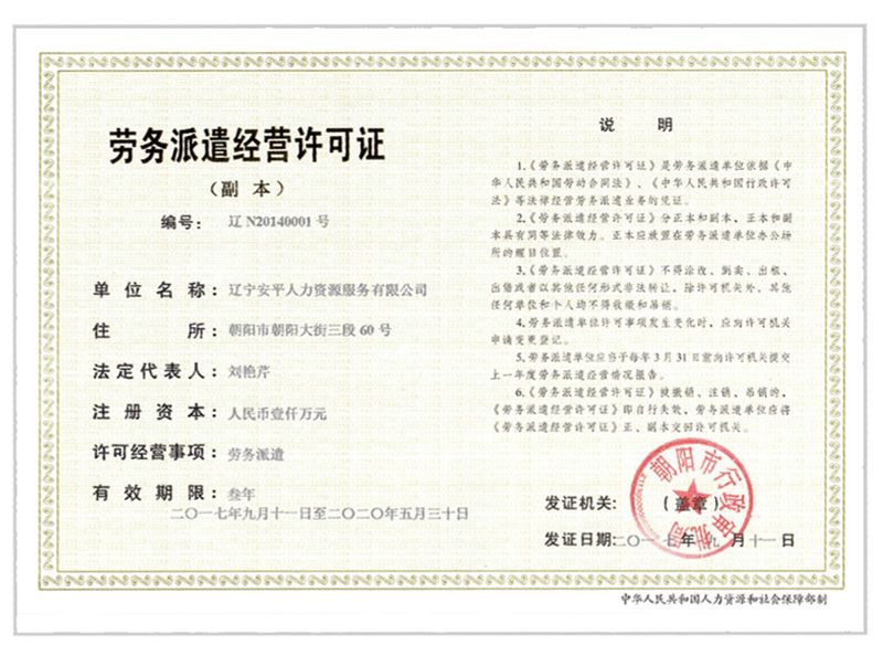勞務(wù)派遣經(jīng)營許可證